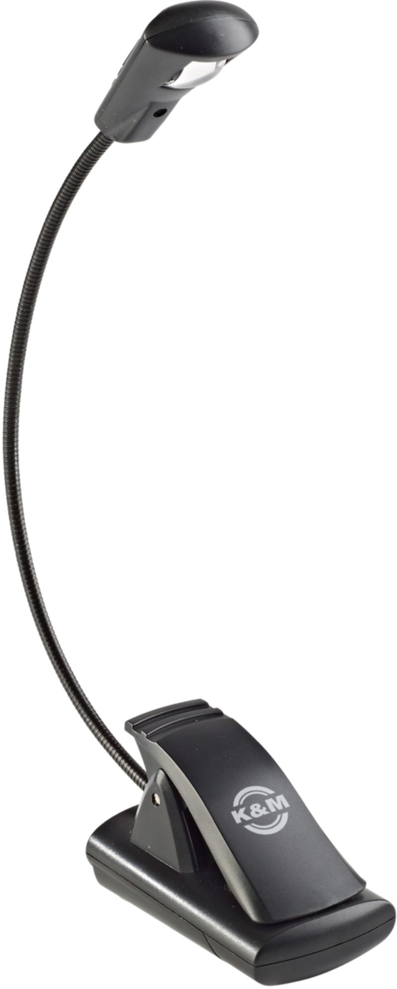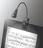 Denne batteridrevne LED-lampen drives av tre AAA-batterier og kan enkelt festes på materiale med en tykkelse på opptil 25 mm eller plasseres fritt på en bordplate. Den er perfekt for bruk med notestativ eller på et instrument, men fungerer like godt når du vil lese i mørket ved å feste den på en bok.