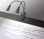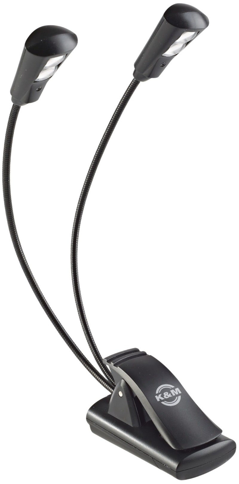 König & Meyer musikkstativlys "Double2 LED FlexLight" er en batteridrevet LED-lys som drives med batterier eller nettadapter (ikke inkludert). Du kan klamre den fast på materiale med en tykkelse på opptil 25mm eller sette den på et bord hvis du ønsker at den skal stå fritt. Passer bra til notstativ eller på et instrument, men også like bra å feste på en bok når du vil lese i mørket.