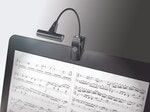 König & Meyer Music stand light " Led FlexLight" är en batteridriven LED-belysning som drivs med batterier eller nätadapter (ingår ej). Du kan klämma fast den på material med en tjocklek på upp till 25mm eller ställa den på en bordsskiva om du vill ha den fristående. Passar bra till notställ eller på ett instrument men lika bra att fästa på en bok när du vill läsa i mörkret.