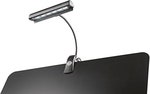 König & Meyer Music stand light "Concert Light" er en notstålbelysning med 6 LED-lamper som drives med batterier eller den medfølgende nettadaptersystemet. Du kan klype den fast til materiale med en tykkelse på opptil 25mm. Lampen er utstyrt med 6 kraftige LED-lamper som er montert på en fleksibel svanehals slik at du kan finne en passende plassering og vinkel.