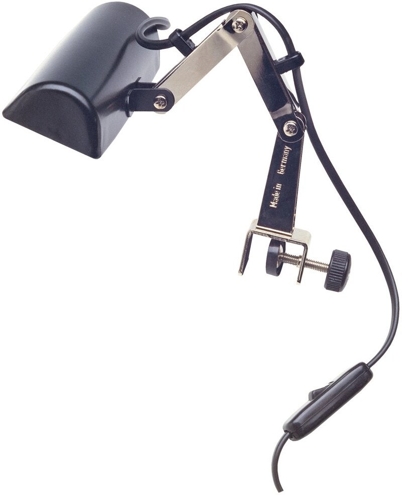 Klassisk notestativbelysning med 3-leddet arm og klemme.