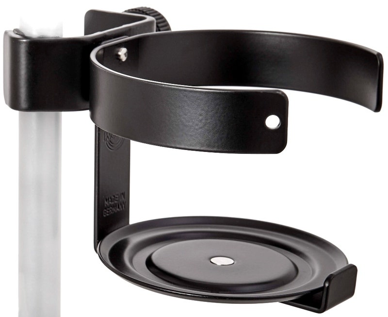 Artikkelnummer 1000841Drikkeholder, 85 mm bred, for stativ med opp til 23 mm diameter. Sort.