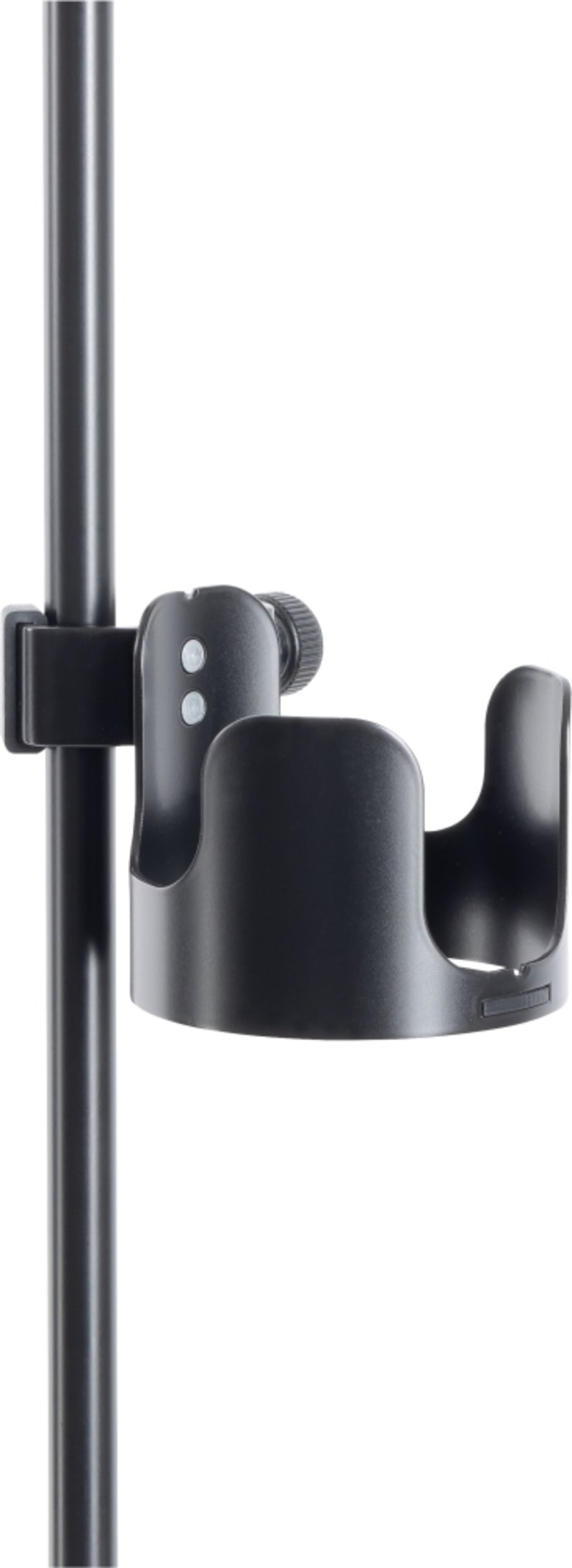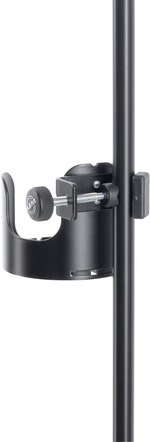 Koppholder i metall for flasker, glass og kopper med en diameter på opptil 80 mm. Monteres på mikrofonstativ og lignende, med en maksimal diameter på 30 mm