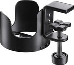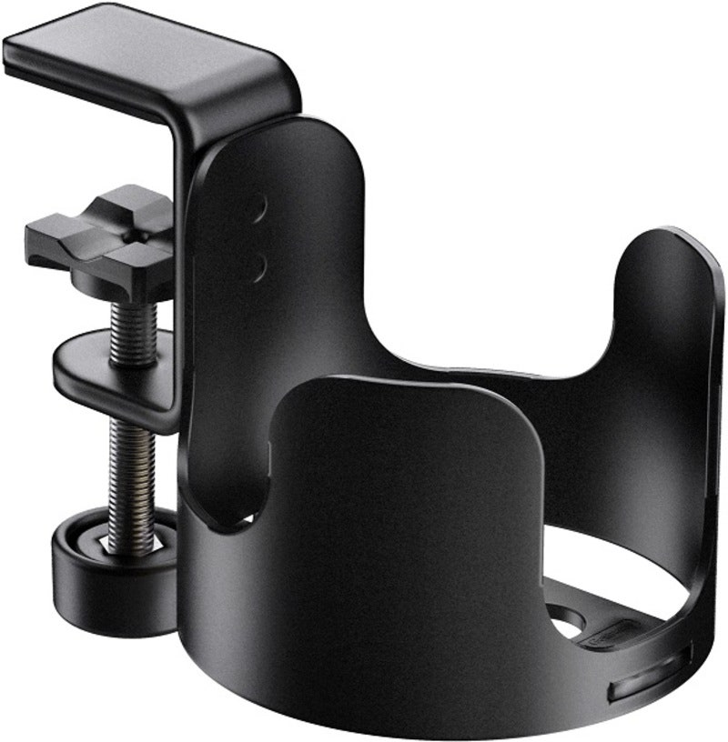 Robust metallholder for å holde flasker, glass og kopper med en maksimal diameter på 85 mm. Høyden på kroppen er 80 mm og vekten er ca. 340 gram. Den overflatebeskyttende klemmen er egnet for bordplater med en tykkelse på opptil 40 mm.