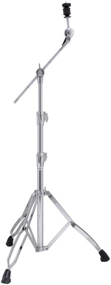 Prisvärt bomstativ i krom med dubbelstagede ben.