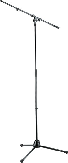 Mikrofonstativ, ekstra høyt, rett, lange ben, svart.