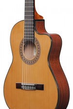 Artikkelnummer 10840713/4 klassisk, cutaway, gran/Sapele, Okoume hals, Purpleheart gripebrett og stall, 46 mm sadel, Ibanez Under Saddle pickup, AEQ-2T preamp