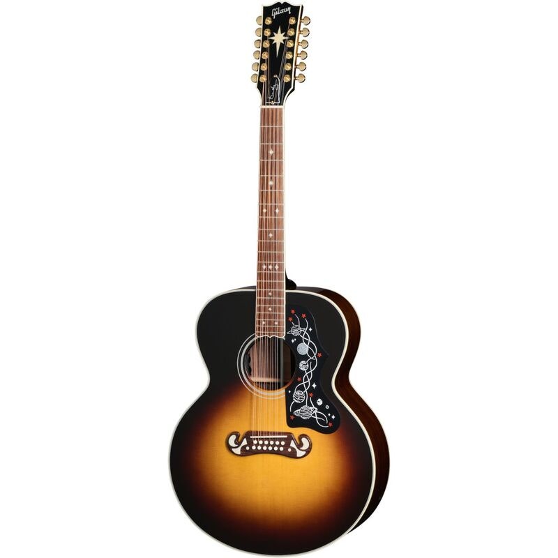 Artikkelnummer 1094234SJ-200 12-strengs, Vintage Sunburst, AAA Sitka-gran, AAA rosentre, lønnehals med valnøttlist, agoya-stjerner, Fishman Matrix, Grover Mini Rotomatic, gull, hardt etui.