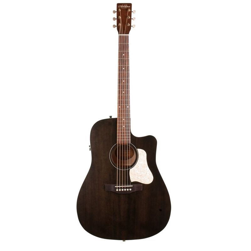 Artikkelnummer 1094150Solid seder, villkirsebærkropp, Presys II, innebygd tuner, 44 mm nut, rosentre-gripebrett, halvblank Faded Black, cutaway dreadnought.