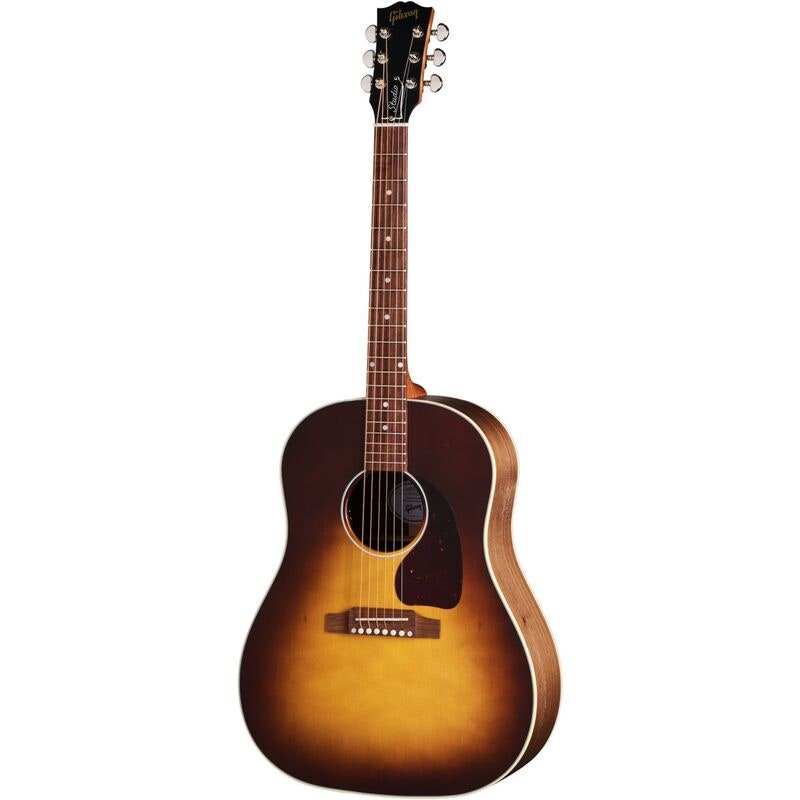 Gibson J-45 Studio Walnut Burst er en del av Studio-serien, håndlaget i Bozeman, Montana. Serien kombinerer klassisk Gibson-håndverk med moderne design og lydmessig presisjon for både scene og studio.