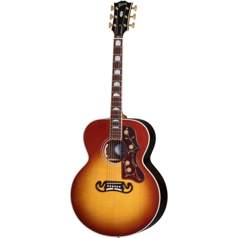 Gibson SJ-200 Standard Rosewood Burst bringer rosentre tilbake til den legendariske Super Jumbo-modellen, kjent som “The King of the Flat-Tops.” Med lokk i Sitkagran og kropp i rosentre får gitaren en varm, rik klang med dyp bass og klare overtoner. Den store kroppen gir fyldig lyd og sterk projeksjon – ideell for både scene og studio.