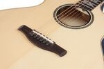 AE-kroppen med cutaway gir en komfortabel spilleposisjon og balansert tone for både studio og scene. Abalone- og lønninlegg, sammen med rosett og lydhullsbinding, fullfører designet. Gullfargede stemmeskruer og Ibanez Advantage-stifter brukes for holdbarhet og presisjon.