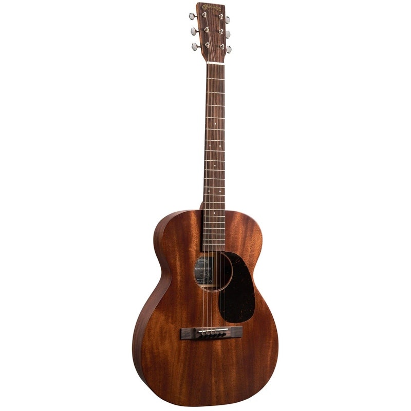 Artikkelnummer 1096788Akustisk gitar, hel mahognitopp, mahogni sider og bunn, mahognihals, rosewood gripebrett, Martin E1‑elektronikk, åpne nikkel‑stemmeskruer.