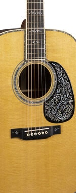 Ideen til denne modellen startet for nesten 25 år siden da Martin installerte sin første lasergraveringsmaskin, og Boak begynte å eksperimentere med ulike måter å bruke den på. Boak skapte en intrikat illustrasjon med penn og blekk av et komplekst blomsterdesign som var ment å lasergraveres inn i en skilpadde pickguard, men materialet viste seg ikke å kunne graveres trygt. Spol frem 23 år, kom Boak over sin originale illustrasjon og trodde den ville bli et vakkert stykke hvis den ble innlagt med perle. Han hadde rett! I samarbeid med Bill Seymour og Jeremy Chism på Pearlworks modifiserte trioen kunstverket for å tillate det detaljerte perleinnleggsarbeidet. Den resulterende prototypen vant godkjenning av Chris Martin IV, som ba Boak utvide designet til gripebrettet og headstocken. Modellen har også førsteklasses østindisk palisander bak og sider, med den høyeste graden av gran valgt for lydplanken. Scalloped foroverflyttet X-avstivning sikrer den åpne projeksjonen som Martin-gitarer er verdsatt for. Ytterligere vintage-inspirerte detaljer inkluderer antikke hvite bindinger; abaloneinnlegg langs omkretsen av toppen, gripebrettforlengelsen og rosett; en full glans-finish med "top aging toner"; og åpne nikkel-stemmeskruer med butterbean-knotter.