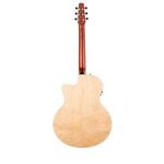 Seagull Performer CW Mini-Jumbo har et trykktestet lokk i hel gran og sider/bak i flamme-lønn, som gir en lys, resonant tone med tydelig mellomregister. Mini-Jumbo-formen gir et bredt og balansert lydbilde med god projeksjon.