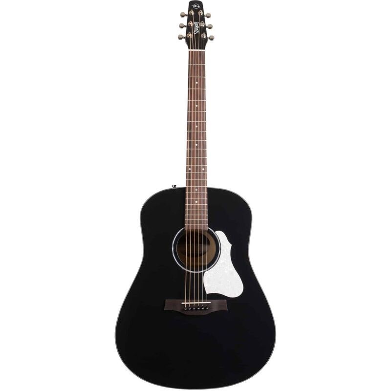 Seagull S6 Classic Black A/E er en dreadnought-modell med heltrelokk i solid cedar og kropp i kanadisk vildkörsbær. Den svarte halvblanke finishen dekker både lokk, sider og bunn, noe som gir et ensartet utseende. Halsen er laget av Silver Leaf-lønn, og gripebrettet er i rosewood. Modellen er utstyrt med Presys VT-systemet for forsterket lyd og enkel tilkobling til forsterker eller lydsystem.