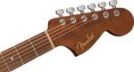 Artikkelnummer 1093695Akustisk gitar, Orchestra, laminert gran/sapele, 25,5” mensur, valnøtt gripebrett, Fender-elektronikk med innebygd tuner, svart pickguard, Mustang® 6-i-rad headstock
