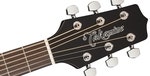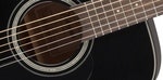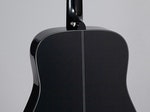 Svartlackerad gitarr av dreadnought-modell med solid grantopp.