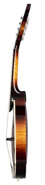 Gibson F-5G Dark Burst er en moderne tolkning av den ikoniske F-5-designen, utviklet for å møte behovene til dagens mandolinspillere. Med moderne spesifikasjoner som ubelagt ibenholtgripebrett med 14-tommers radius, uten plekterbrett og kort gripebretforlengelse, tilbyr F-5G en mer åpen tone og forbedret spillbarhet, samtidig som den bevarer Gibsons tradisjonelle håndverk.