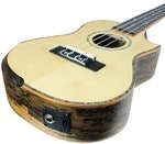 Ukulele i Grand Concert-utførelse med solitt granlock, ergonomiske funksjoner og innebygd mikrofonsystem.
