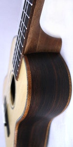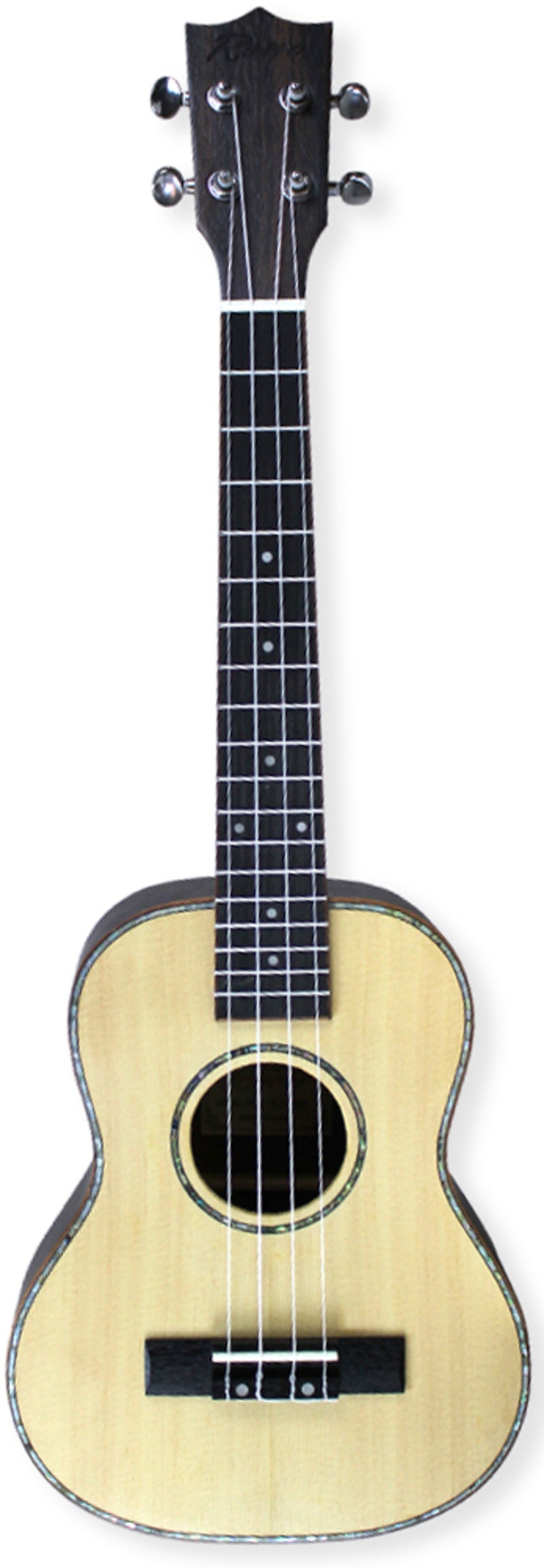 Ukulele av Tenor-modell, større kropp, lenge skala, solitt granlock.