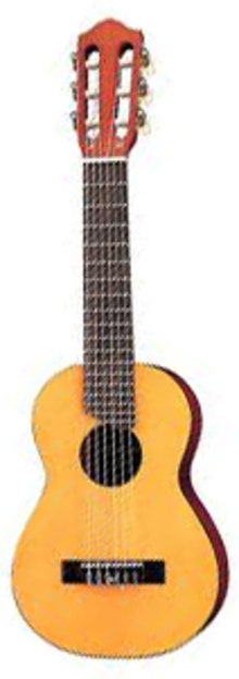 This is a 433mm scale ukulele-style nylon string guitar. It's fun and stylish at any time, any where. Guitalele is a perfect take-along guitar.The guitalele’s tuning is pitched up to “A” (or up a 4th) at A/D/G/C/E/A.