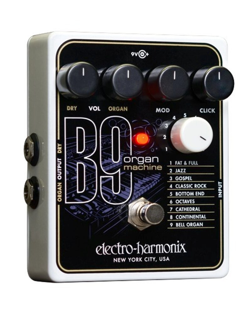 Electro Harmonix B9 simulerer 9 st klassiske orgelsound og vare sig du spiller i en røkig bar, slick jazzklubb eller i en katedral så fixer B9 den typen av orgelsound du vil ha.