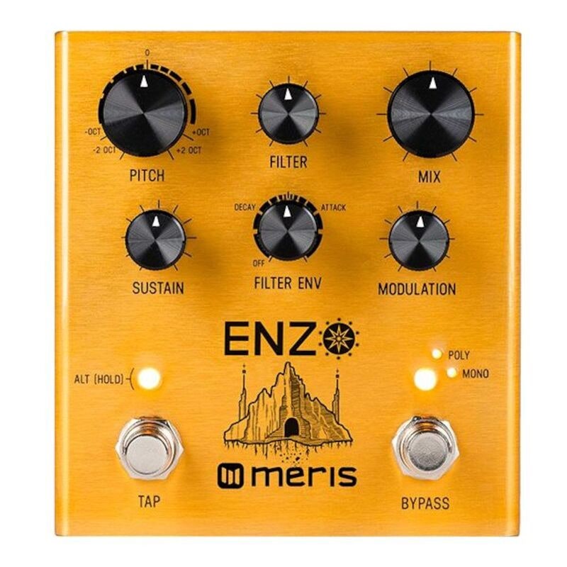 Meris Enzo er en pedalbasert multirøst-synthesizer som sporer gitar-signaler med høy presisjon, enten det gjelder enkelttoner, akkorder eller arpeggierte sekvenser. Ingen spesielle mikrofoner kreves. Pedalen fungerer også med andre instrumenter eller linjesignaler, noe som gjør den anvendelig i mange ulike sammenhenger.