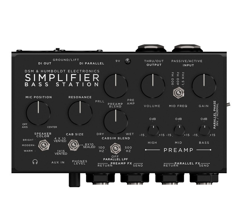 Simplifier Bass Station är en helt analog »Zero Watt Bass Amp» som får plass på din pedalbrädde. Preampen är basert på industristandarden Ampeg SVT ®, en förstärkare som dyrkas för sin karaktär, artikulation og mångsidighet. En 3-bands EQ med semi-parametrisk mellomregisterkontroll samt lågpassfilter, to effektreturer, den ene parallell, og du kan velge mellom tre forskjellige emuleringer av kabinetter, 8x10”, 4x10” og 1x15”.