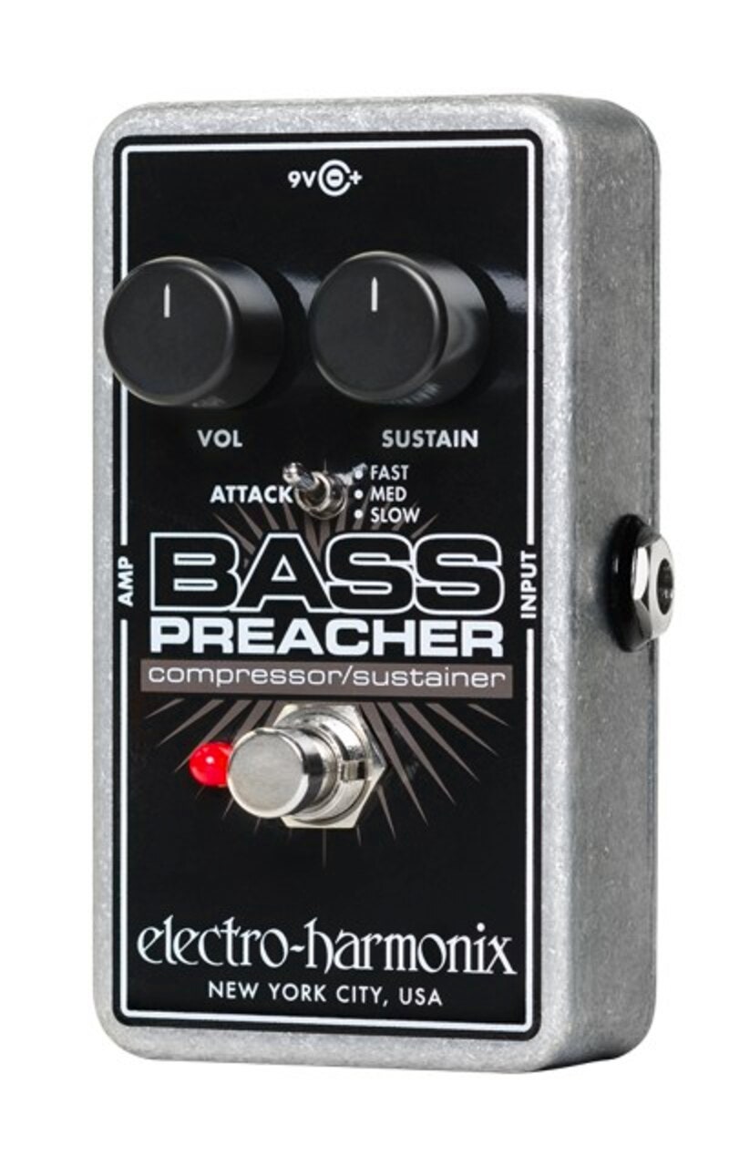 Designed for and by bassists, this compact compressor/sustainer features fully adjustable controls that can subtly transform the dynamic qualities of a bass guitar or take them to the extreme. From transparently leveling out notes so they sit in a track to creating an intensely squashed sound, the Bass Preacher helps spread the gospel of great bass tone!