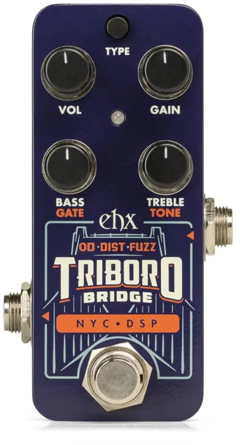 EHX Pico Triboro Bridge er en forvrengningspedal med tre forskjellige typer forvrengning; Overdrive, Distortion og Fuzz. De tre forskjellige variantene gir en bred palett av gain og der gainen fra en modus tar slutt, tar den neste over. I tillegg til et bredt spekter av forvrengning, har det kompakte chassiset en kraftig EQ og en Contour-kontroll som kan ta tonen fra mer vintage-lignende lyd til det ultramoderne artikulerte bittet.