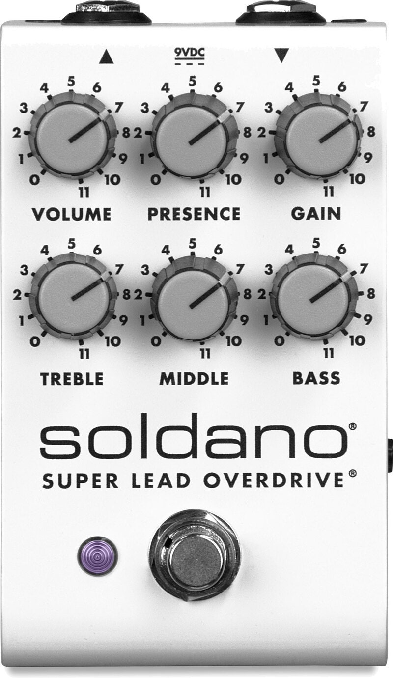 SLO-100 er kjent for å være en av de mest detaljerte high-gain gitarforsterkerne noensinne. Det har frem til nå vært utfordrende å fange forsterkerens nyanserte karakter i et pedalformat. Den nye Super Lead Overdrive-pedalen endrer dette, med den perfekte balansen mellom gain, sustain og touch respons som SLO er kjent for. Den er laget med de samme cascaded gain-stadiene som primærforsterkeren, og er den perfekte måten å få det signatur Soldano-lyden inn på pedalbordet ditt.