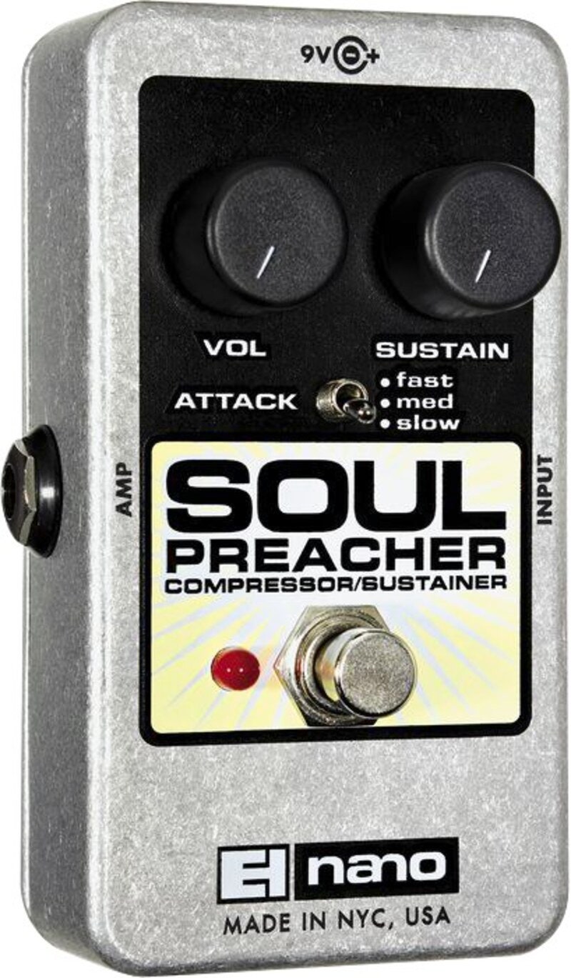 Artikkelnummer 1014158Electro Harmonix Nano Soul Preacher. Klassisk kompressor med et imponerende grep som fungerer for både gitar og bass.