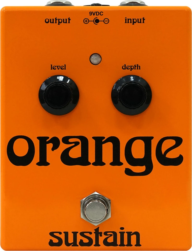 The Orange Sustain draws very little current (less than 10mA), making it easy to slot into your pedal board’s power supply