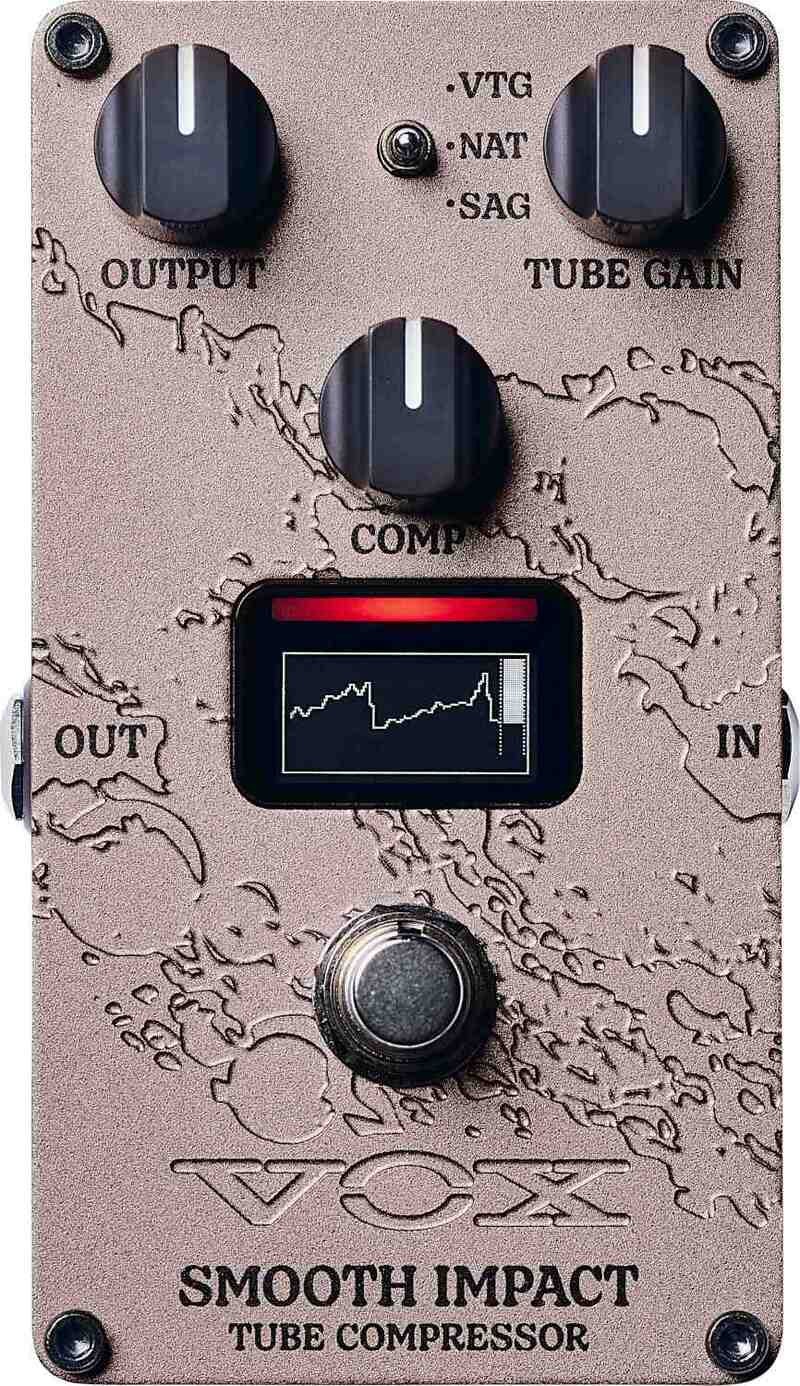 SMOOTH IMPACT er en ekte vakuumrørkompressor som utnytter forsterkningsvariasjonen som følge av svingninger i Nutubes strømforsyningsspenning. Det markerer debuten til en pedal-type vakuumrørkompressor, som tilbyr en distinkt, naturlig spillefølelse i motsetning til kompressorer av andre typer. I stedet for konvensjonelle VCA-, optiske eller FET-metoder, utnytter den den ikke-lineære egenskapen hos rør, med overtoner avledet unikt fra vakuumrør, og skiller det fra klipping.