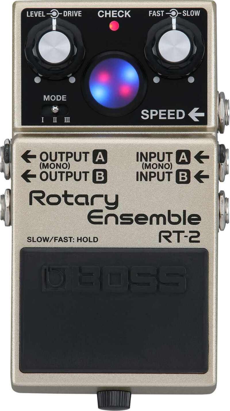 Å spille gjennom et roterende høyttalerkabinett er en helt spesiell opplevelse – varm, organisk og tredimensjonal. Men klassiske rotary-kabinetter som Leslie 122 eller 147 er store og tunge, og lite praktiske for moderne musikere. BOSS RT-2 Rotary Ensemble løser problemet ved å gjenskape det ikoniske rotary-lyden i et kompakt, scenevennlig pedalformat – uten å gå på kompromiss med dybde, respons eller kontroll.