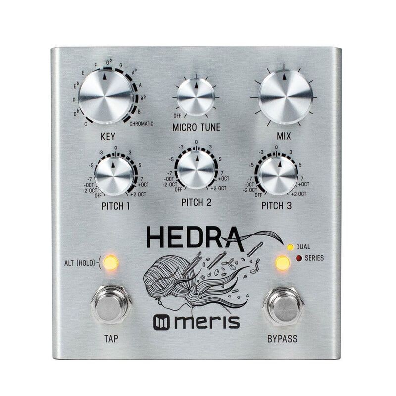 Hver handling har en reaksjon. En enkelt stein kastet kan skape fengslende bølgelignende effekter, mens en enkel vri på nøkkelen kan låse opp en strøm av ellers tidligere usette og usette hendelser. Dette er magien Hedra gir deg og instrumentet ditt, og lar deg oppdage nye harmoniske lydbølgeutladninger med hver enkelt tone du spiller. Meris Hedra er en 3-Voice Rhythmic Pitch Shifter som kan legge til 3 harmonirrøster til instrumentet ditt, og med Tap tempo-synkronisert delay tilgjengelig for hver stemme, går denne skjønnheten langt ut over standard pitch-shifting. I tillegg, pitch glide, mikro-inntuning, 4 individuelle delay-konfigurasjoner, justerbar pitch-korreksjon og MIDI- kontroll kombineres for å gjøre Hedra til et instrument og en lydupplevelse uten like. Du kan holde det enkelt og bare bruke Hedra som en standard kromatisk pitch-shifter. Eller du kan begynne å legge på intervaller og gli inn i dens dansende diatoniske drømmeland, via dens 6 ulike skalaer og et rikt utvalg av rytmiske delinger. Skru opp Glide-kontrollen og hold nede TAP for auto-swelling synth-aktige portamento-bevegelser - eller øk pitch-regenereringen - og du vil sveve av gårde på skyene av glitrende sci-fi-effekter. Koble en MIDI Keyboard eller en MIDI Sequencer til Hedra og gjør instrumentet ditt til et sinnssvakt teppe av harmonier og hardtuned pitch-gliider. Selv om den legger til en helt ny dimensjon til det beskjedne 6 (eller flere) strengs instrumentet, er ikke Hedra begrenset til bare gitarer. Faktisk kan du bruke pedalen på nesten hvilket som helst instrument eller linjenivå lydsignal du ønsker. Enten du velger å fullstendig transformere dine beats på en trommemaskin, harmonisere vokaler eller fullstendig endre ekstra synthesizere, loops eller annen lyd, vil Hedras avanserte pitch-shifting-palett garantert transportere deg og lyden din til helt nye lydbor. Funksjoner