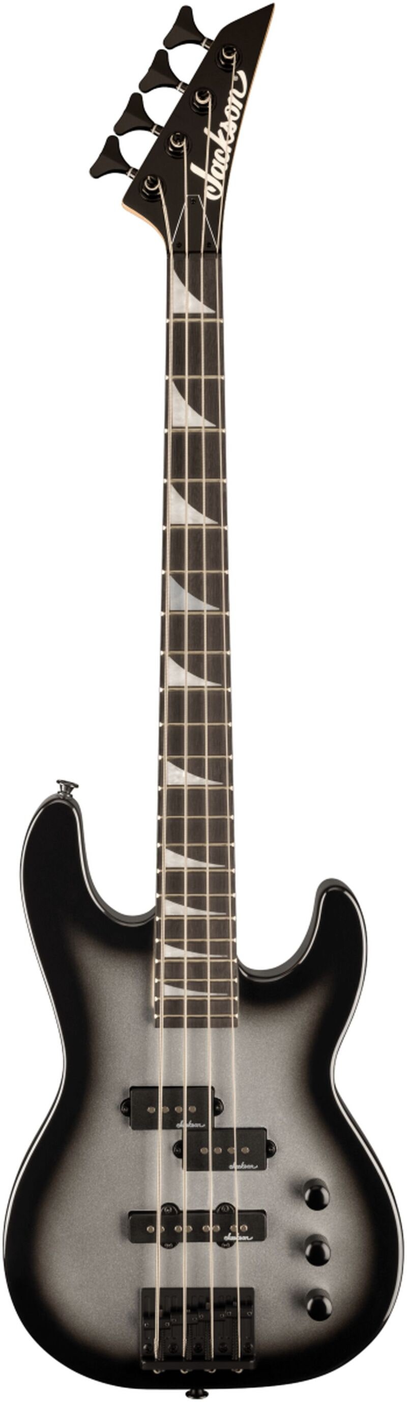 Bassen er utstyrt med en Jackson P-stil pickup i halsposisjon og en J-stil pickup ved stolen, kontrollert med to volumkontroller og én tonekontroll. Hardtail-stol med svart baseplate og Jackson-mekanikk gir stabil stemming. Leveres i Silverburst-finish med svart hardware og svart spiss headstock.