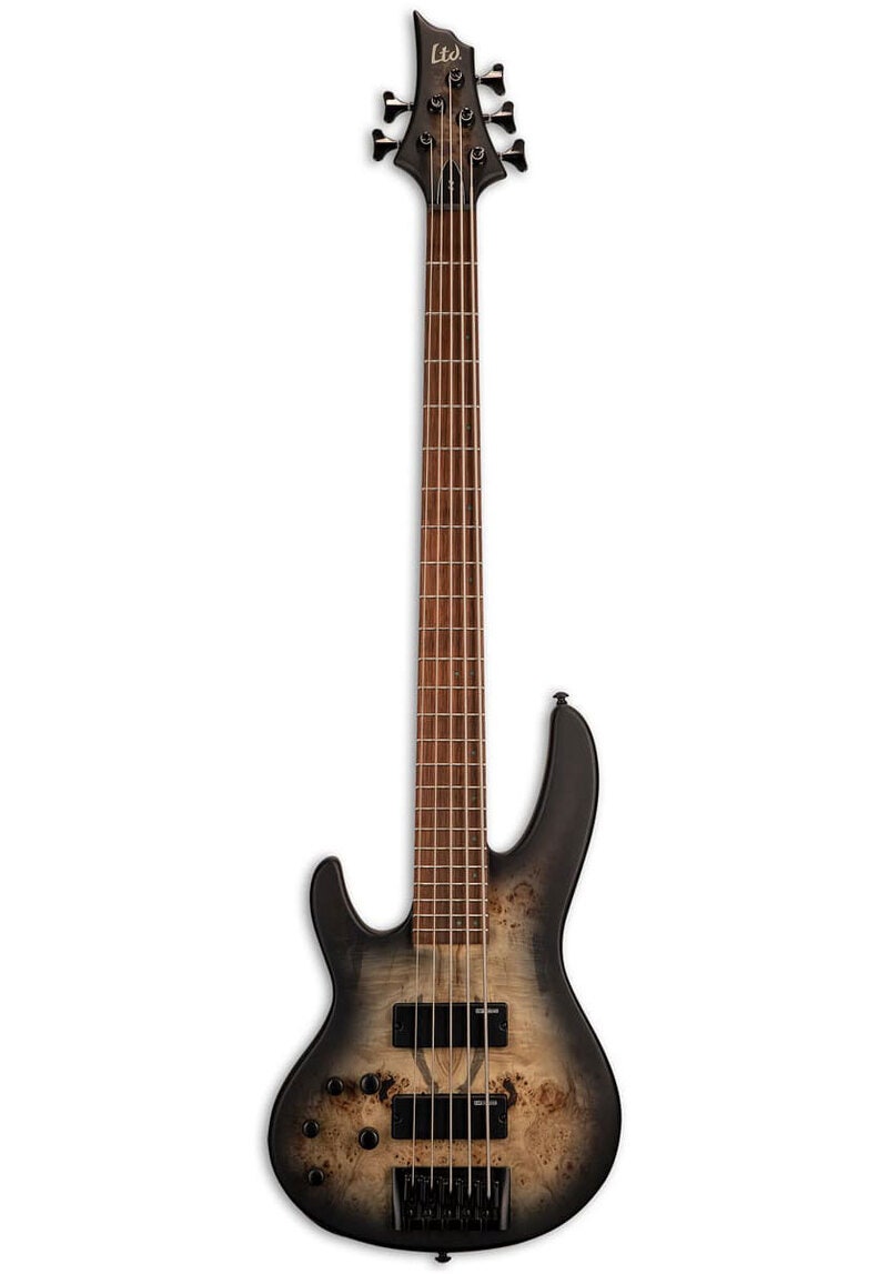 LTD’s D Series bass er lenge vært favoritter blant seriøse musikere som vet at man ikke trenger å bruke en formue for å få et bassinstrument av høy kvalitet med gjennomgående hals. Fullstendig oppdatert for 2020, de nye D Series bassene — D-4, D-5, og D-6 — tilbyr en 7-delt maple/jatoba hals på en mahognykropp med en luksuriøs burled poplar-topp i Black Natural Burst Satin finish. D Series bassene leveres med flotte ESP Designed SB-4, SB-5, eller SB-6 passive pickups med ABQ-3 3-bånd aktiv EQ for toneforming. De inkluderer også Grover stemmeskruer og høykvalitets LTD broer.