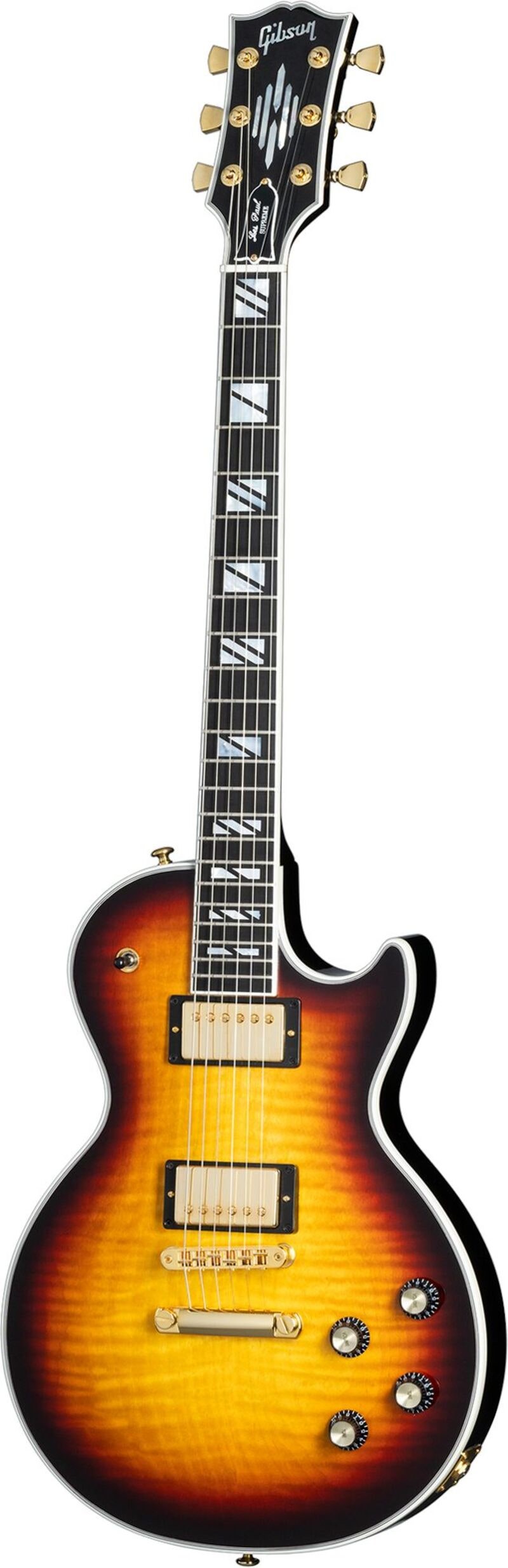 Gibson Les Paul Supreme återgår til den klassiske designen som gjorde den relevant. Med forbedrede funksjoner får den all mulighet til å skille seg ut i sortimentet. Den har en vakker AAA-figurert lönntopp på en mahoganykropp med ultramoderne vektavlastning. Mahoganyhalsen har en greppbräda i ebenholts med compound radius og Super Split Block inlay av perlemor. Halsen har en modern contoured heel for enestående tilgang til de øvre båndene, og hodet er utstyrt med slående nye perlemorinlayg inspirasjon hentet fra Gibsons arkiv fra 40-tallet. De doble Burstbucker Pro mikrofonene er kombinert med push/pull volym- og tonekontroller for fleksibel coil tap, phase og Pure Bypass switching. De tre elegante overflatene er smakfullt fremhevet med hardevarer i gull. Dette gjør at den ikke bare låter fantastisk og er ekstremt fleksibel som instrument, men også blir en usedvanlig vakker og moderne rockemaskin. En hardcase medfølger.