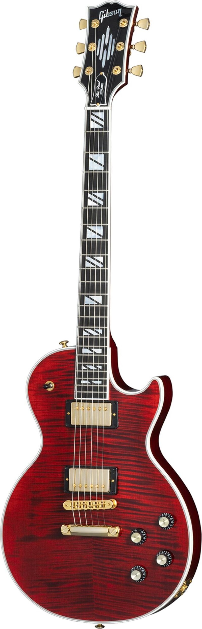 Gibson Les Paul Supreme återgår til den klassiske designen som gjorde den relevant. Med forbedrede funksjoner får den all mulighet til å skille seg ut i sortimentet. Den har en vakker AAA-figurerad lønntopp på en mahoganykropp med ultramodern vektavlastning. Mahoganyhalsen har en greppbräda i ebenholts med compound radius og Super Split Block innleggb av perlemor. Halsen har en moderne contoured heel for eksepsjonell tilgang til de øvre båndene og hodet er prydet med slående nye perlemorinlegg inspirert av Gibsons arkiv fra 40-tallet. De doble Burstbucker Pro mikrofonene er kombinert med push/pull volym- og tonekontroller for fleksibel coil cap, phase og Pure Bypass switching. De tre herlige overflatene er elegant fremhevet med hårdvaror i gull. Dette gjør at den ikke bare høres fantastisk ut og blir i høyeste grad fleksibel som instrument, men også blir en eksepsjonell vakker og moderne rockemaskin. Et hardshell forsterking inngår.
