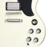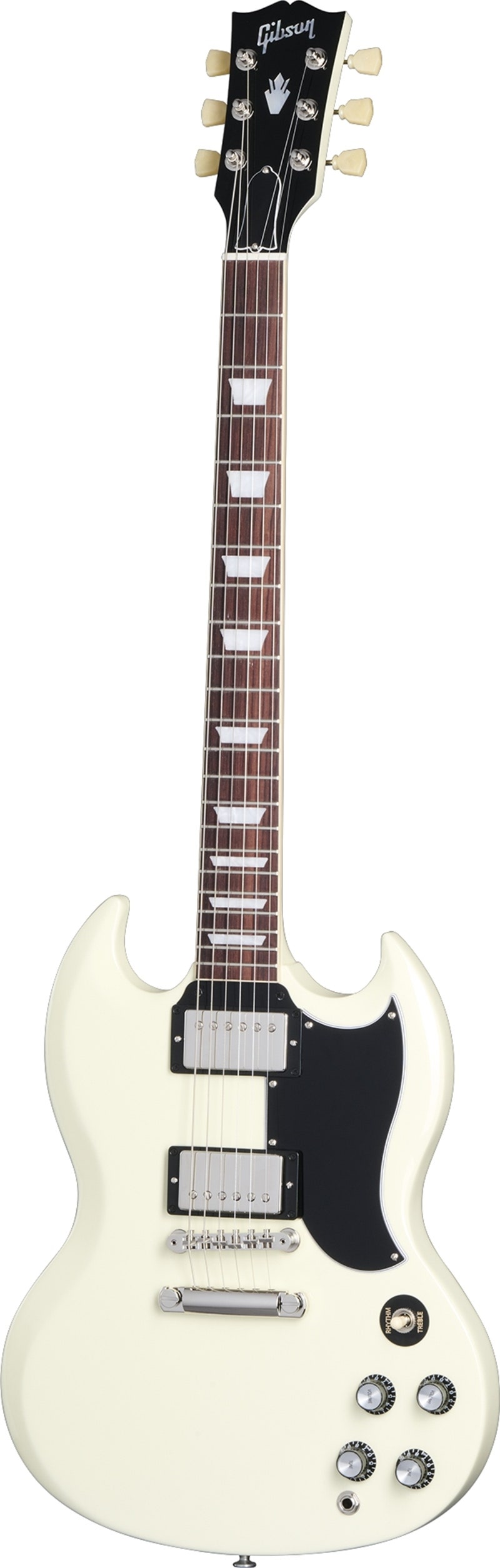 Gibson SG Standard '61 Stop Bar Classic White er en ny versjon av den klassiske SG-modellen, introdusert i 1961. Den har en mahognykropp og hals, en SlimTaper™-profil, en bound rosewood grepsbræte med 22 medium jumbo bånd, og en Stop Bar tailpiece. Den nye Cardinal Red Burst-finishen gir gitaren en unik og elegant stil.