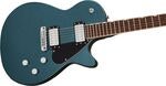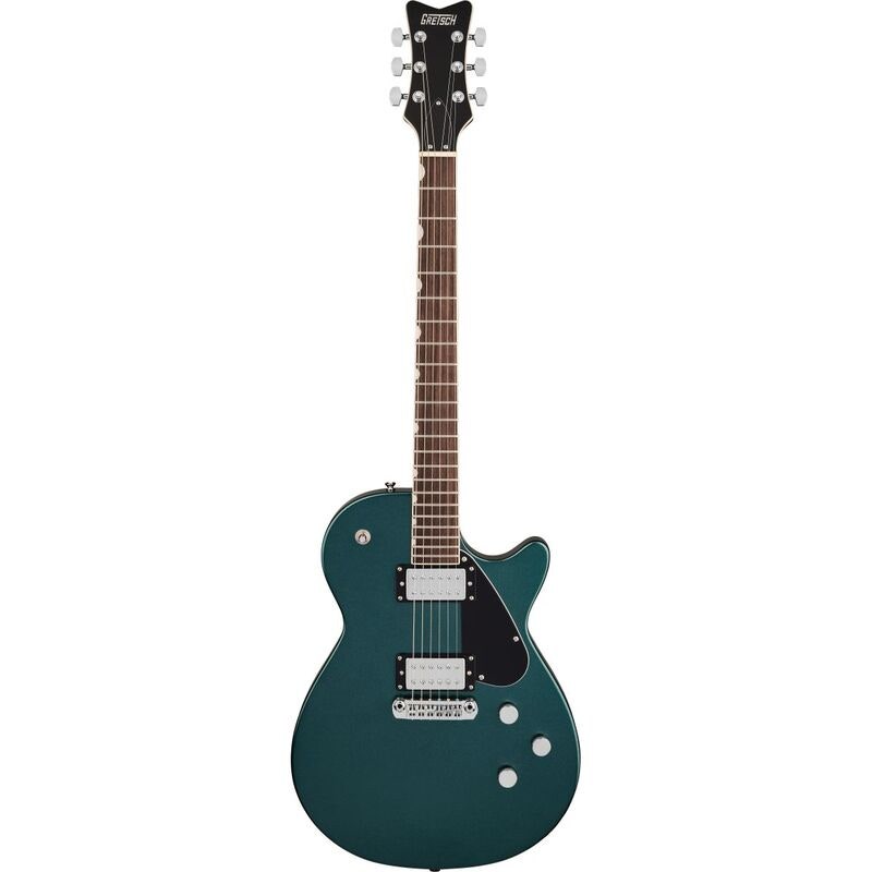 Gretsch Electromatic Jet Club er en elektrisk gitar laget for allsidighet og komfortabel spilling. Kroppen er laget av kamret mahogni med avrundet hæl og ergonomiske konturer som gir god balanse og enkel tilgang til de høyeste båndene. Den fastlimte mahognihalsen har en moderne “C”-profil og gripebrett i rosentre med Pearloid Neo-Classic™ innlegg.