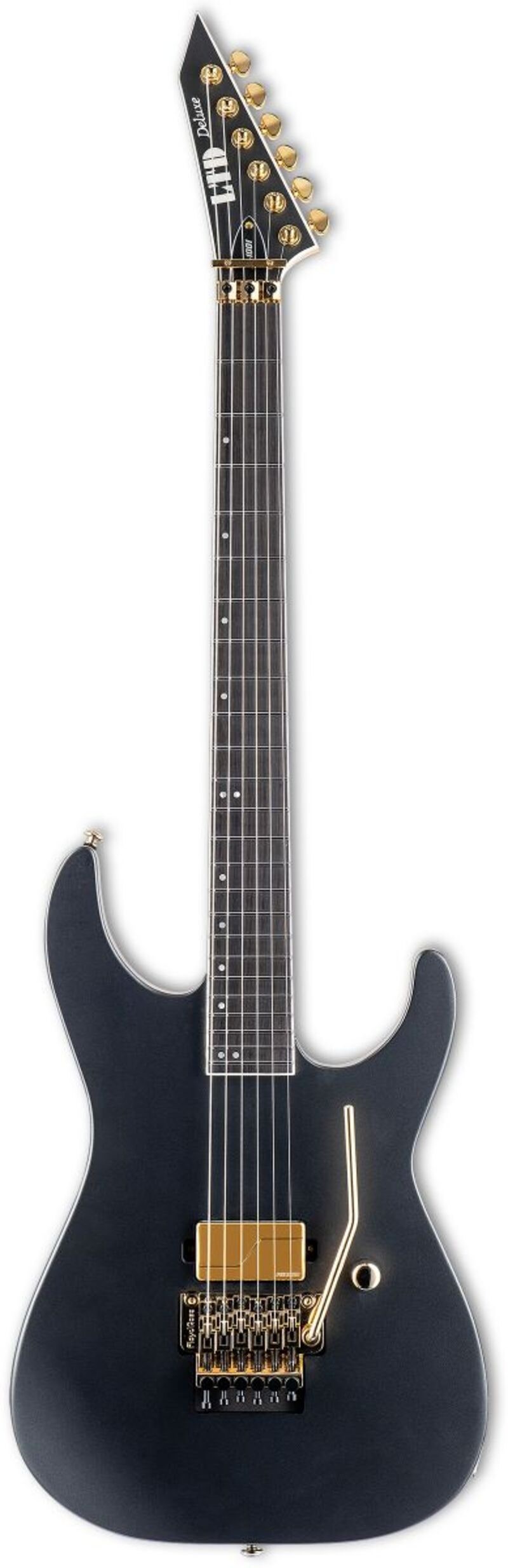 Elgitarren LTD Deluxe M-1001 er designet for ren, aggressiv fart, med kropp i flat-top alder og satin-bakside, samt en ekstra-tynn u-formet tretre-på-mappe hals. Bygget med bolt-on konstruksjon ved 25,5” skala, tilbyr M-1001 en bundet Macassar ebbenhals fingerboard med forskjøvne mødrene-øre-perle damputlayser og 24 ekstra-jumbo rustfrie stålfreer, samt en bundet motfargede reverse headstock for god spenning der du trenger det (på de lavere strengene). Komponenten på M-1001NT inkluderer gullfarget hardware med Floyd Rose 1000 dobbeltlåst tremolo, presise Grover stemmeskruvar og en direkte-montert Fishman Fluence Modern Humbucker aktiv pickup, med en push-pull-regulator for å velge stemmer og en gulldekke som matcher gitarets utrolige estetikk. Voice 1 er den ultimate høymotiverte keramiske humbucker bropickup-lyden, skarp, brennende crunch, stram bass uten mudder, og en growl. Voice 2 leverer moderne passiv angrepytelse med superb organisk forvrengningskarakteristikk med utmerket dynamikk og respons.