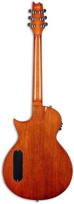 The LTD TL series er består av transducer-elektriske gitarer som tilbyr en unik kammercorps, noe som gjør at du kan oppnå flotte akustiske toner med komforten og følelsen av en elektrisk gitar. TL-6 tilbyr høy byggekvalitet med tradisjonell set-neck konstruksjon ved 25”-skala, en mahognykropp med flammende lønnstop, og en tynn u-formet tre-bit mahognyhals, lik i følelse til mange av våre mest anerkjente elektriske gitarer. Dets rosewood fingerboard har mother-of-pearl prikkinlays og 22 jumbo bånd. Komponenter på TL-6 inkluderer en jatoba- bro, Graphtech NuBone-XB nut og saddle, Grover stemmeskruer, samt en Fishman S-Core pickup og TL-3 preamp med trebents EQ og innebygd tuner. Hvis du har vært på jakt etter den fyldige akustiske tonen på neste opptreden eller innspilling uten å miste den lettspilte ferdigheten du elsker fra din elektriske, sjekk ut en LTD TL Series-modell i dag.