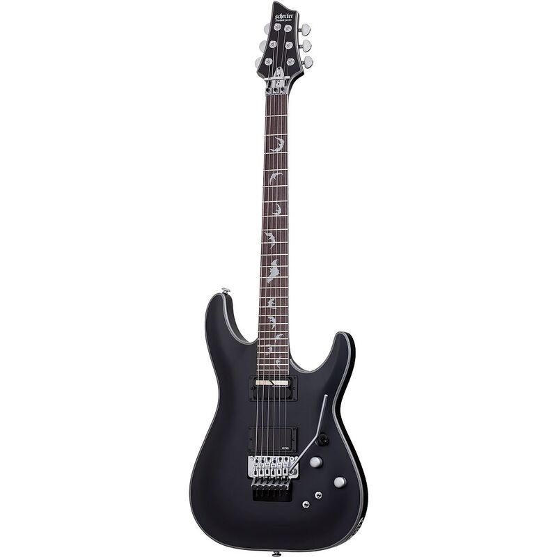 Schecter Damien Platinum 6 FR Sustainiac LH Satin Black – venstrehendt modell med Sustainiac og EMG 81