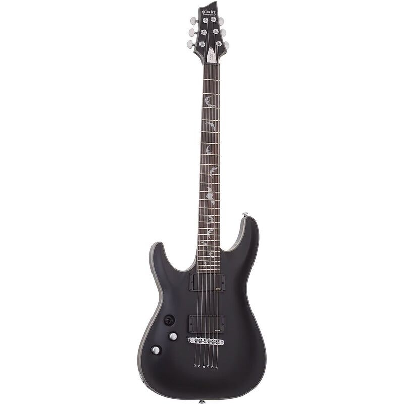 Schecter Damien Platinum-6 LH Satin Black – venstrehendt metalgitar med EMG-pickuper