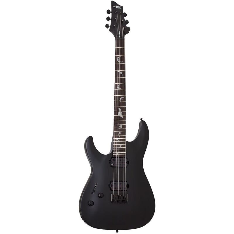 Schecter Damien-6 LH Satin Black – venstrehendt metalgitar med Heretic-humbuckere