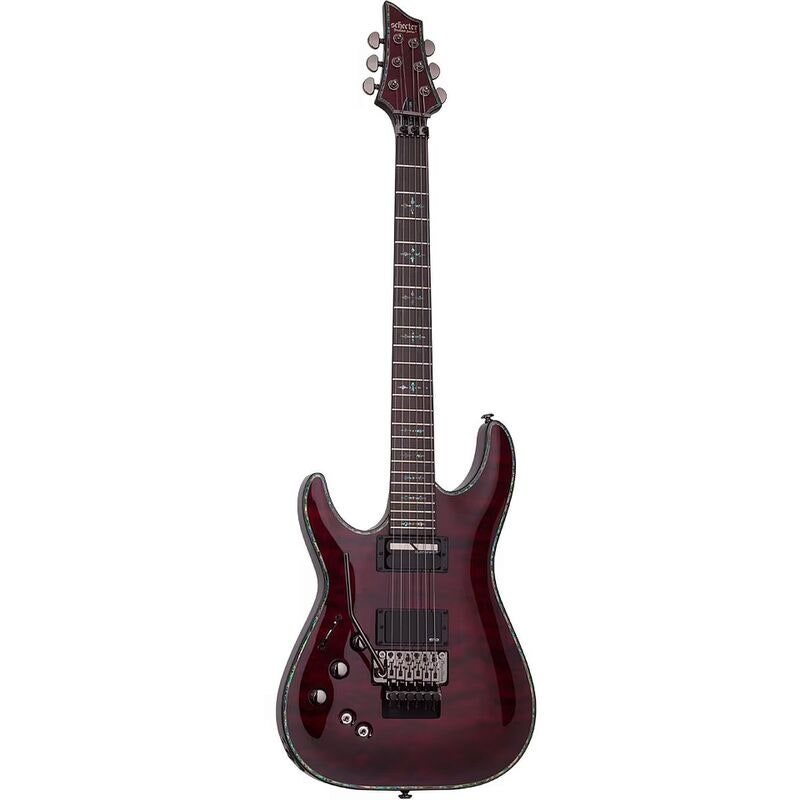 Schecter Hellraiser C-1 FR S LH Black Cherry er en profesjonell venstrehendt elektrisk gitar utviklet for moderne metal og hardrock. EMG 81 i stolen, Sustainiac® i halsen, Ultra Access set-neck og Floyd Rose 1000 gir et svært fleksibelt og stabilt instrument. Quiltet lønnetopp og abalone-binding gir et eksklusivt utseende.