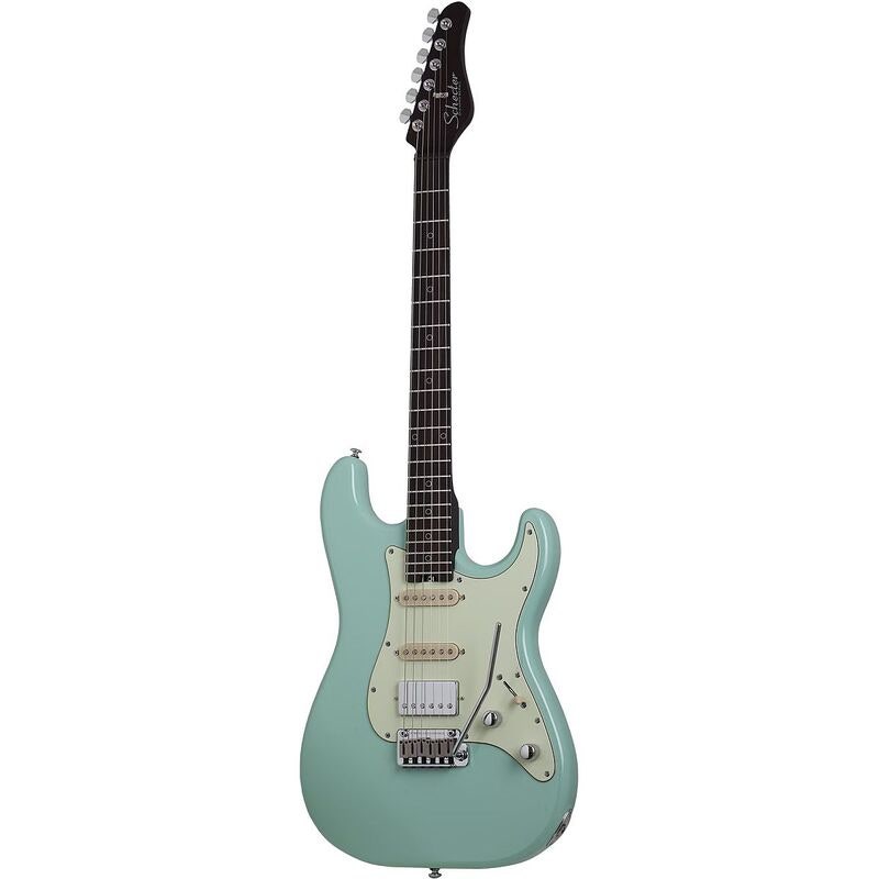 Artikkelnummer 1095333Elgitar, alderkropp, wengehals med ibenholt gripebrett, HSS-pickuper, Atombucker + Subatomic-sett, 22 rustfrie jumbobånd, Schecter Nouveau Tremolo, Atomic Green-finish.